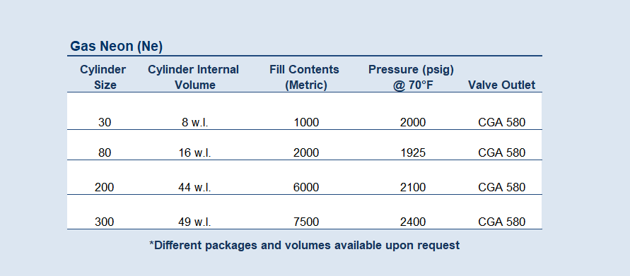 View Neon Gas Product Specifications