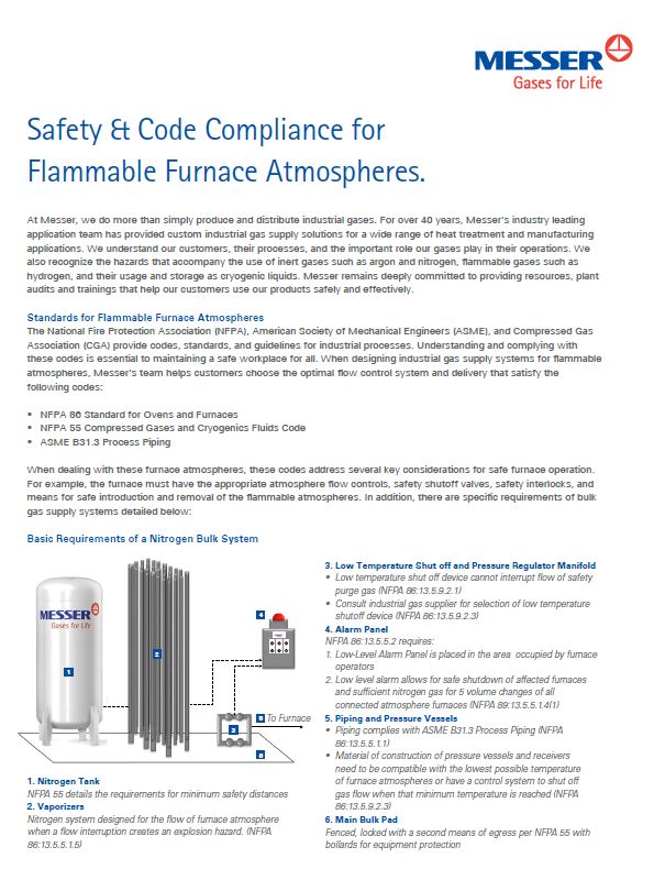 The Messer nitrogen-methanol based atmosphere system generates a very flexible, high-quality atmosphere for carburizing, neutral hardening, annealing and sintering of steel. The nitrogen-methanol atmosphere system includes media storage and supply, flow control, distribution to the furnace, intake into the furnace and atmosphere control.